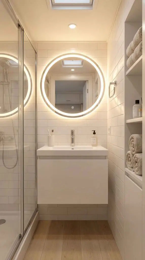 LED mirrors are energy-efficient and long-lasting, making them perfect for RV life where power conservation matters. The backlit design creates a floating effect that makes the mirror appear weightless, adding to the spa-like ambiance. Many models include dimming capabilities and color temperature adjustment to customize the lighting for different times of day.