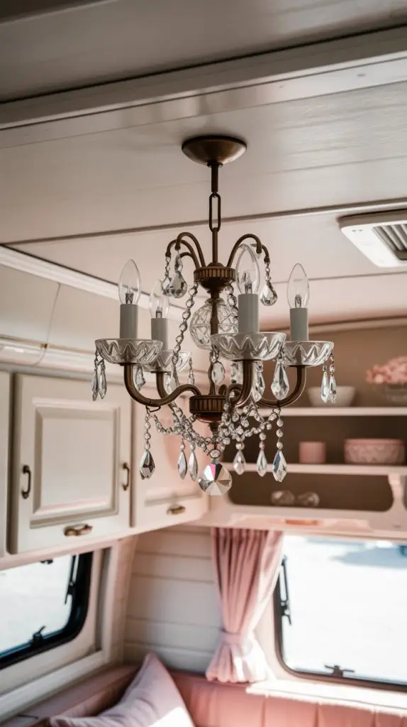 Many modern versions are designed for low ceilings and are surprisingly lightweight, making them a feasible upgrade for an RV. The combination of crystal and perhaps a brushed nickel or aged brass frame provides a beautiful contrast against distressed wood and soft textiles.