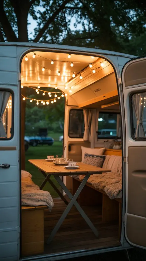 This simple addition makes the dinette area feel special and separate from the rest of the camper after dark. It’s a low-cost, high-impact idea that embodies the “dreamy escape” promise, turning an ordinary mealtime into a romantic occasion.