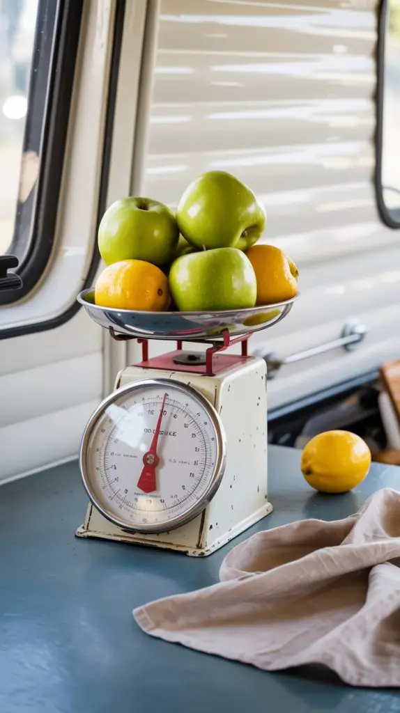 PRO TIP: To prevent bruising on your fruit, you can place a small, delicate linen napkin or a pretty paper doily in the bowl of the scale before adding your apples or lemons. This adds another layer of texture and protects your produce.
