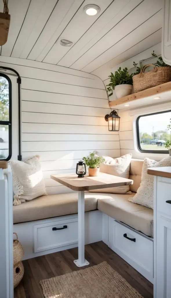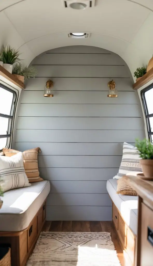 Using lighter shades of shiplap can brighten up the camper while still giving it that cozy charm. You can even paint it white or a soft pastel to match your decor.