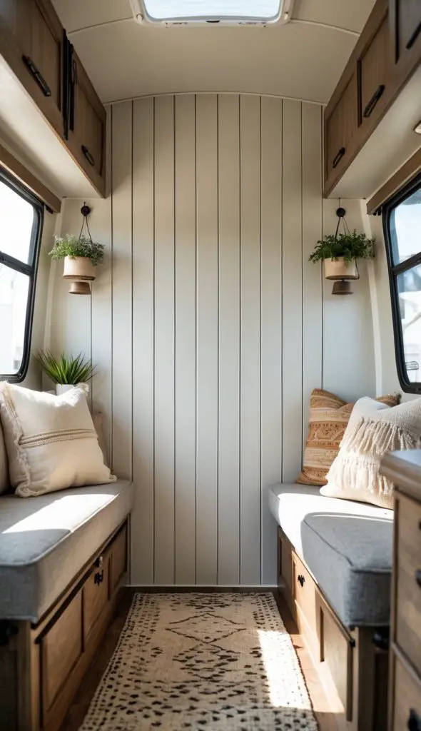 Using shiplap boards vertically can make the walls of your camper feel taller. This simple change adds a fresh look without much effort.