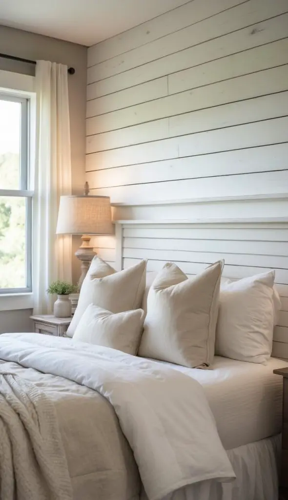 You can paint the shiplap in soft colors like white, cream, or pastel tones. These shades brighten the space and keep it light and airy.